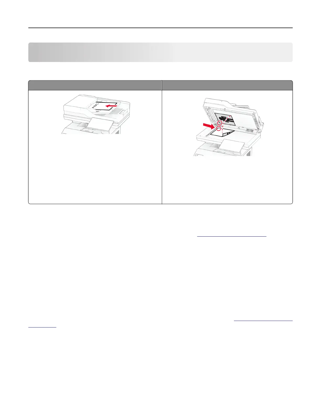 • Use the ADF for multiple‑page or two-sided