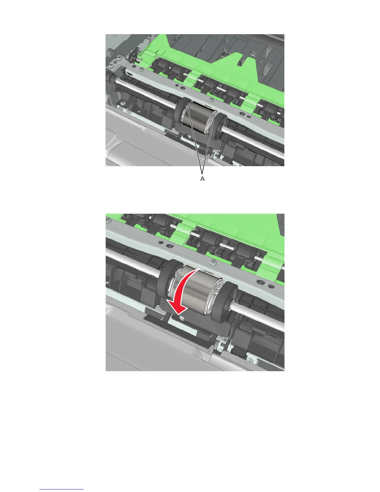 1 Remove the MPF pick roller cover. See “MPF pick roller cover removal” on page 288.