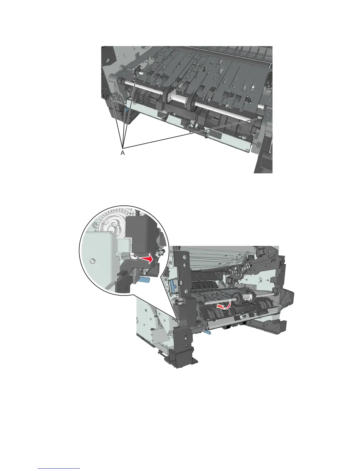 9 Rotate the MPF shaft inward so that the cams at each end point up.