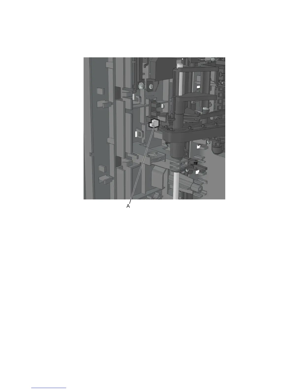 7 Disconnect the cable from the media present sensor (A).