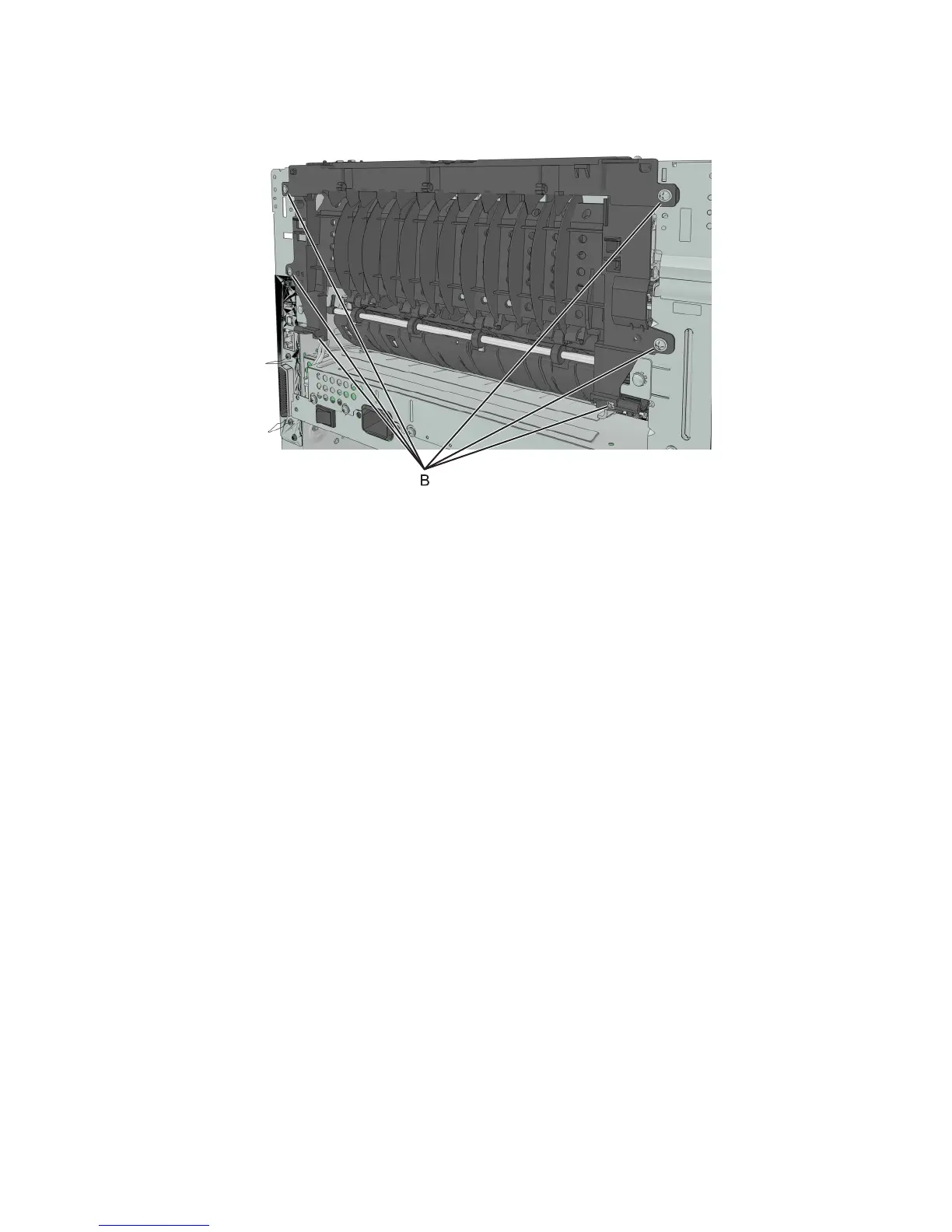 9 Remove the six screws (B) securing the redrive assembly.