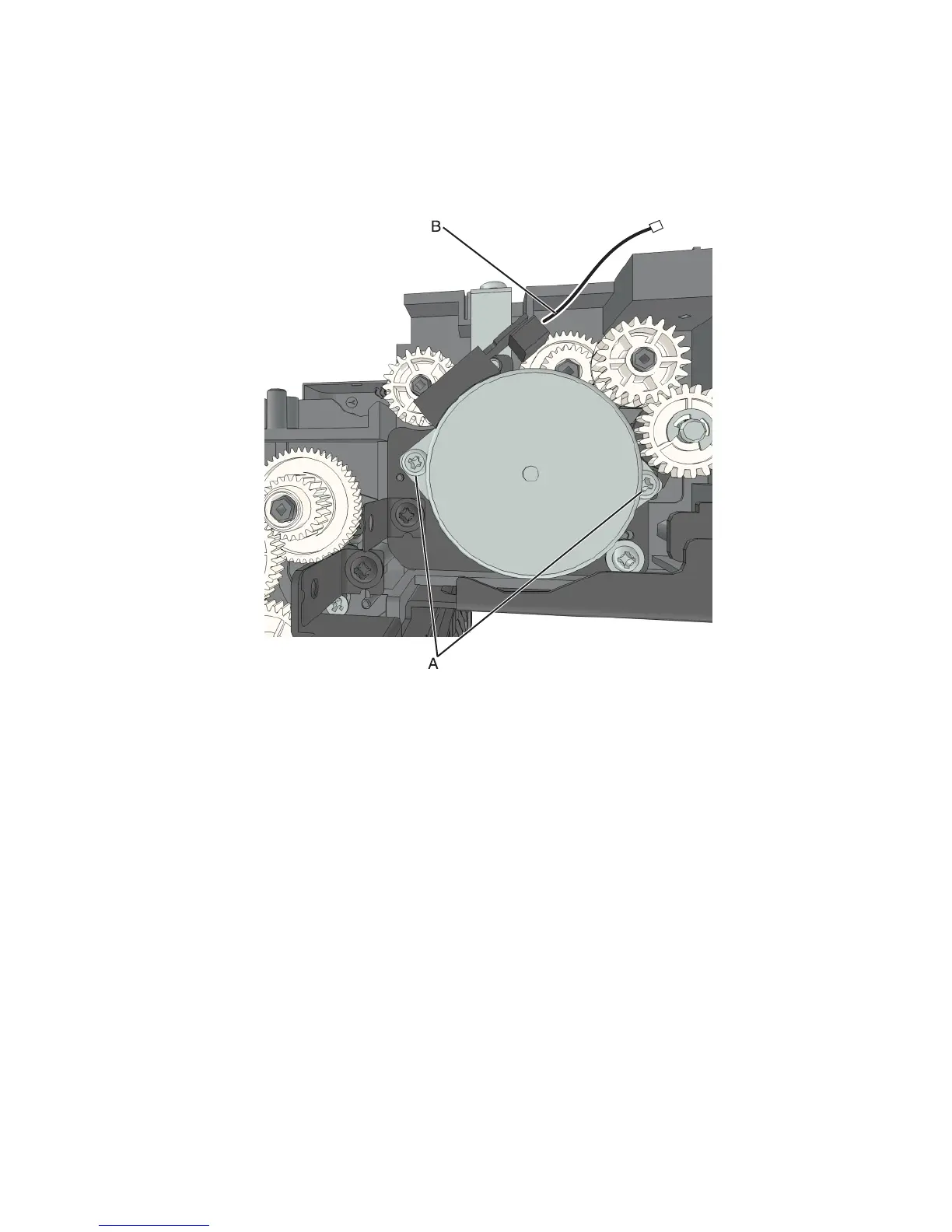 2 Remove the two screws (A) from the paddle motor and disconnect the motor cable (B).