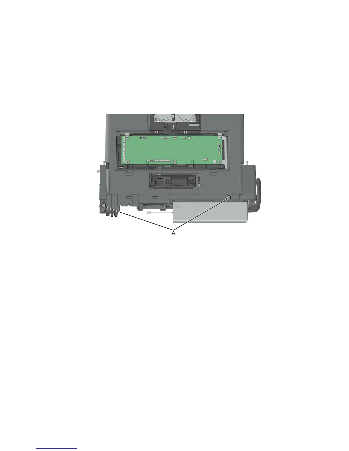 6 Remove the two screws (A) from the top cover.