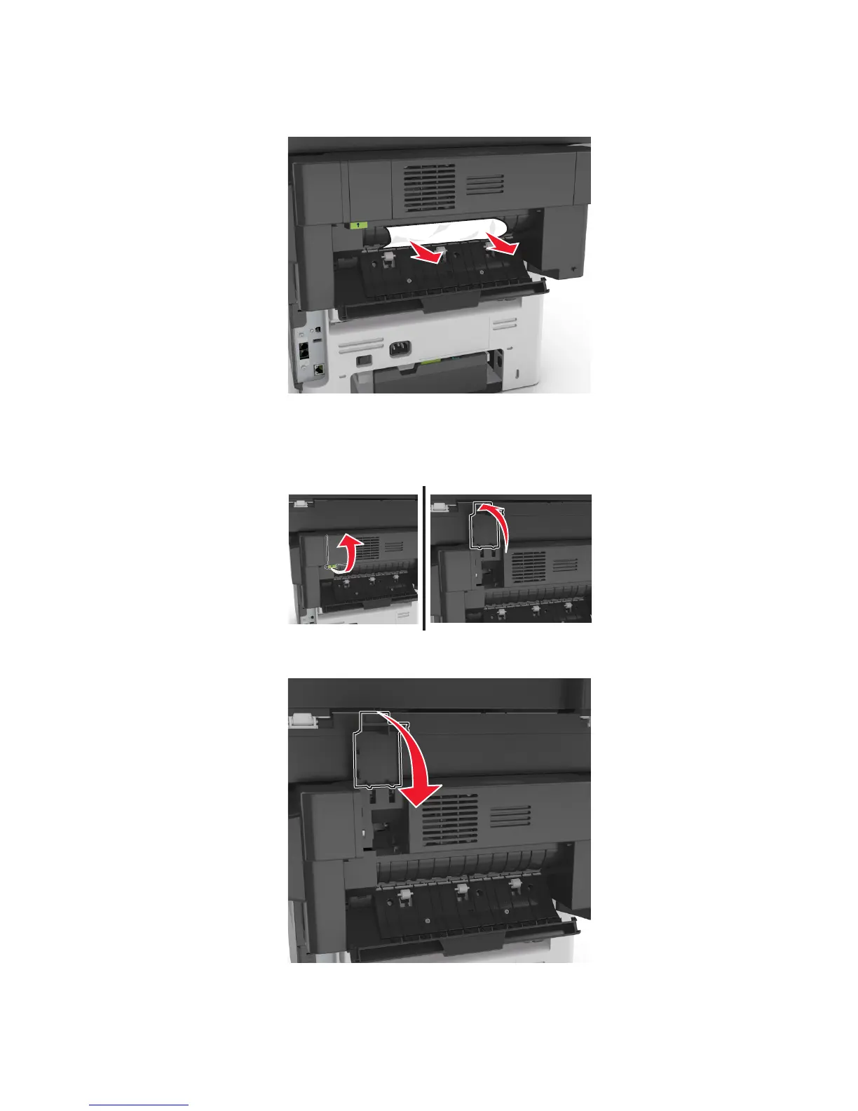 Note: After removing any jammed paper in the finisher bin or in the finisher rear door, open the trap door to