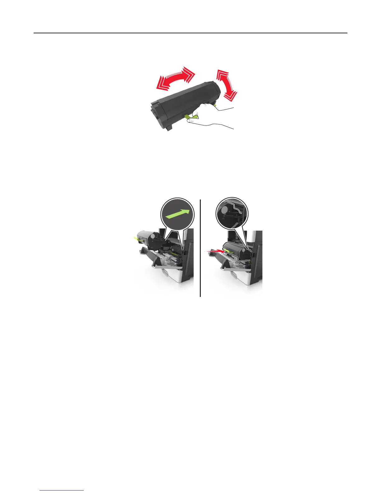 4 Shake the new cartridge to redistribute the toner.