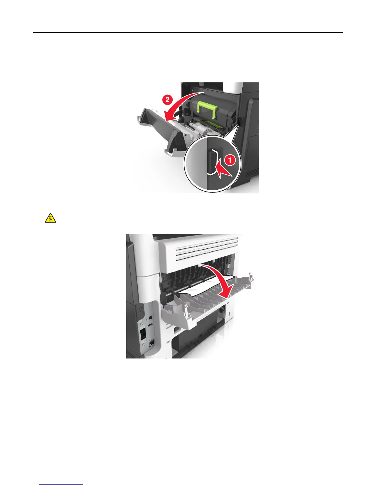 CAUTION—HOT SURFACE: The inside of the printer might be hot. To reduce the risk of injury from a hot