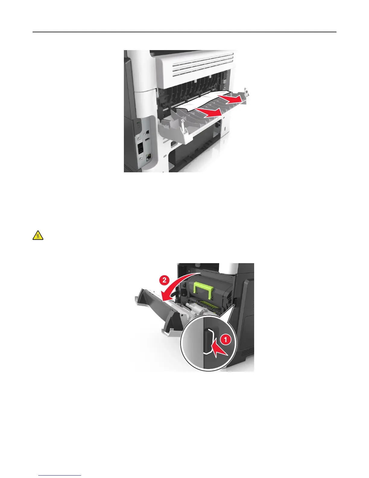 CAUTION—HOT SURFACE: The inside of the printer might be hot. To reduce the risk of injury from a hot