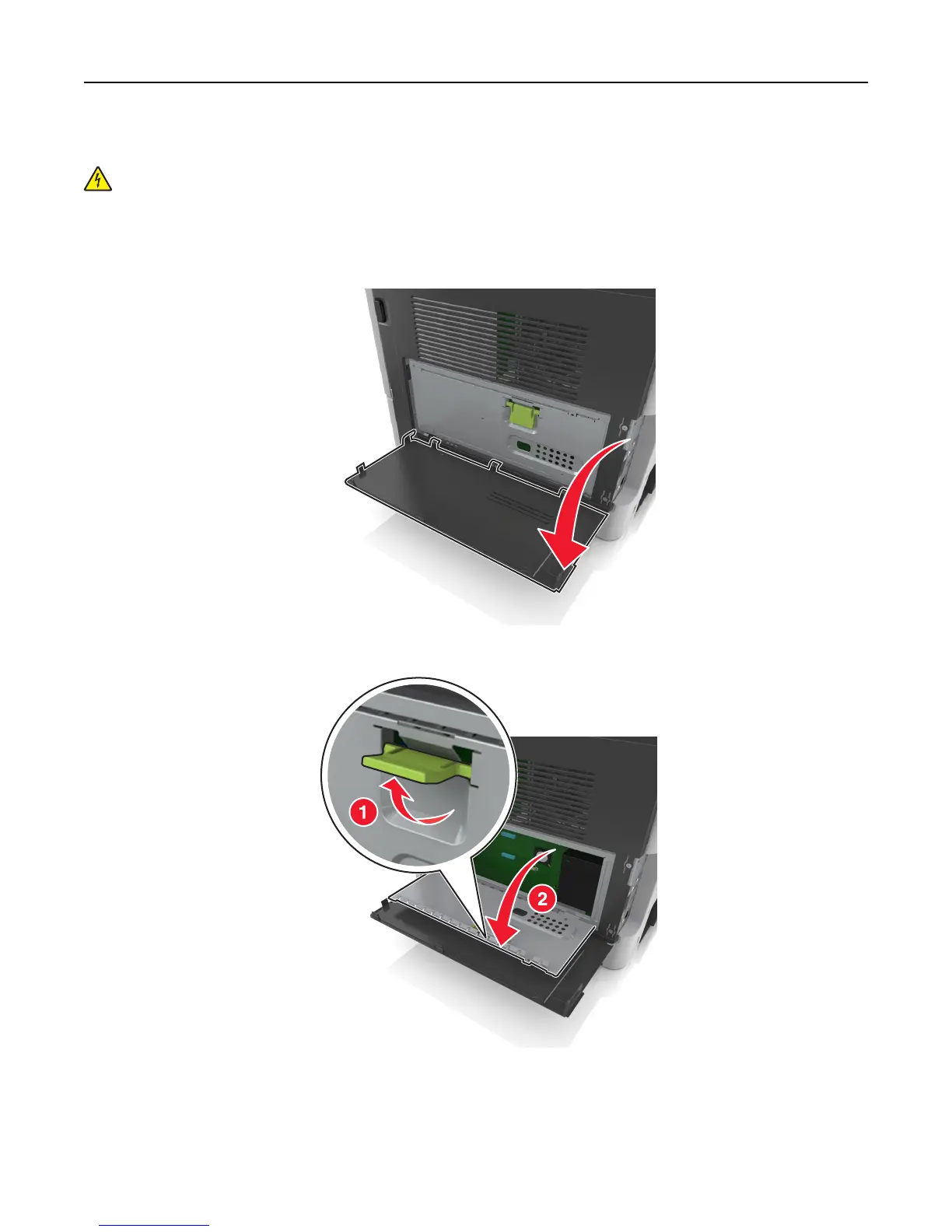 CAUTION—SHOCK HAZARD: If you are accessing the controller board or installing optional hardware or