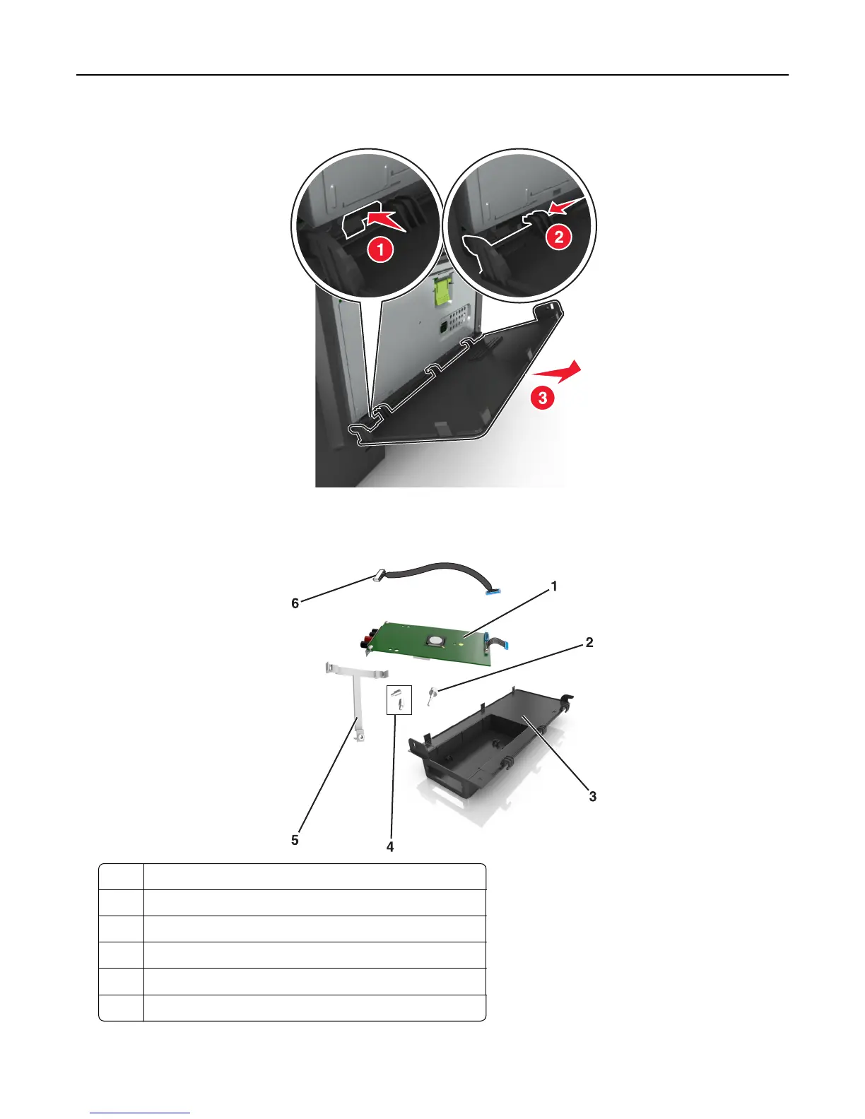 2 Lightly press the stop on the left side of the controller board access door, and then slide the access door to remove.
