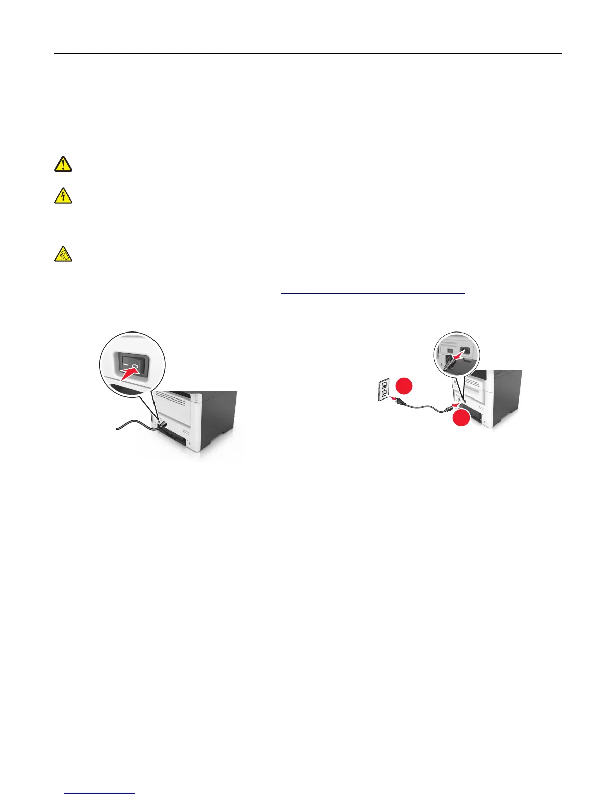 CAUTION—POTENTIAL INJURY: The printer weight is greater than 18 kg (40 lb) and requires two or more