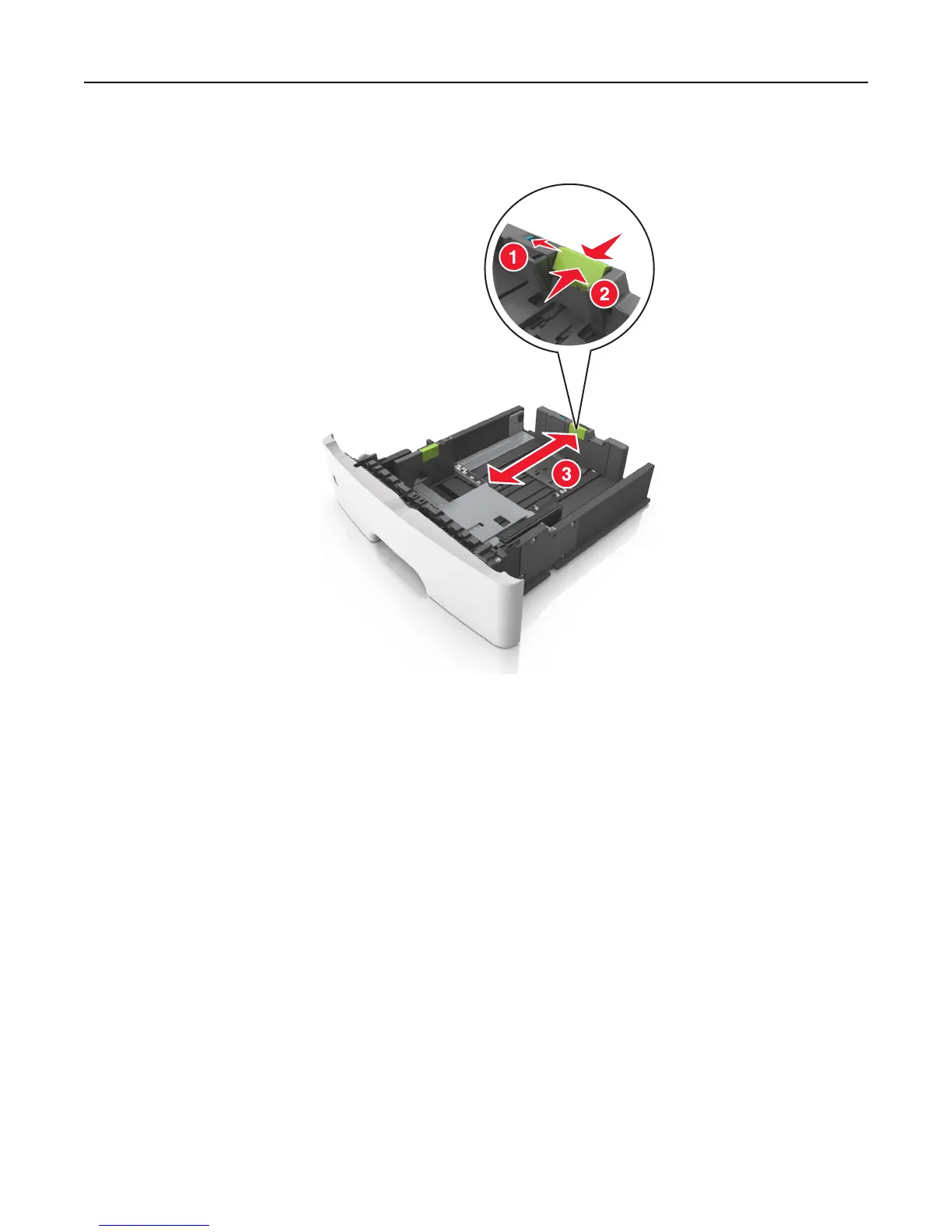 • For some paper sizes like letter, legal, and A4, squeeze, and then slide the length guide tab backward to