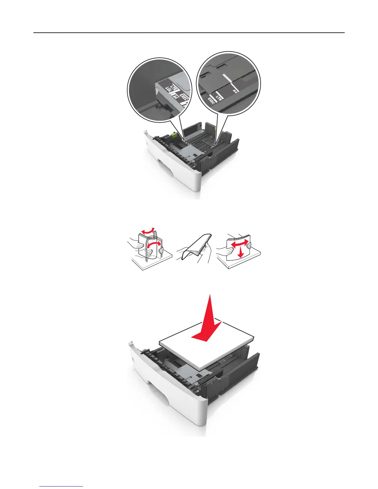 4 Flex the sheets back and forth to loosen them, and then fan them. Do not fold or crease the paper. Straighten the
