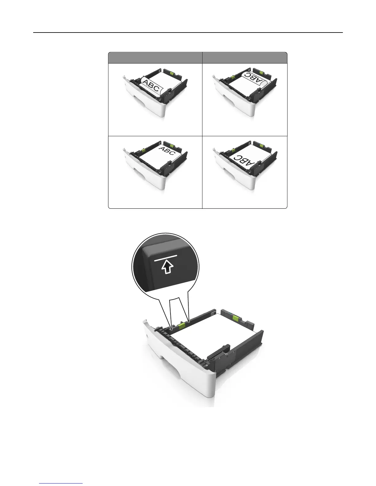 Make sure the paper is below the maximum paper fill indicator located on the side of the width guide. Overfilling