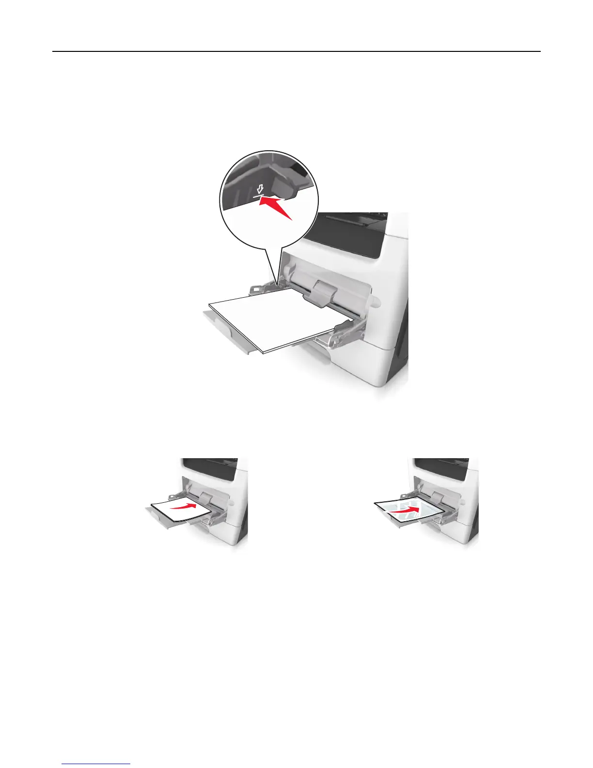 • Do not force paper or specialty media into the multipurpose feeder.