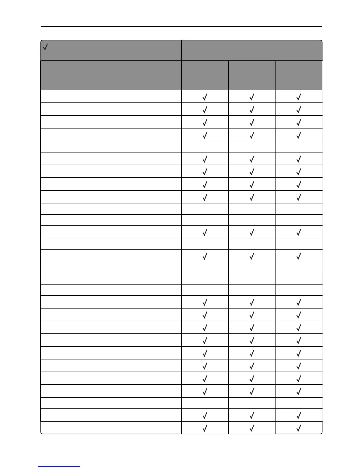 X = Not supported