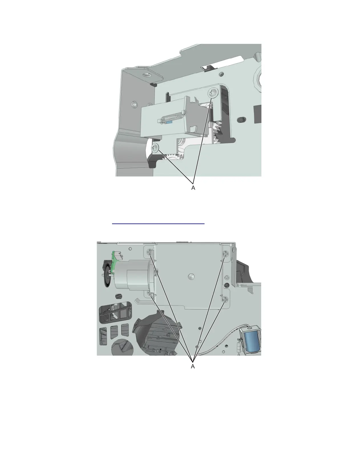 2 Remove the four screws (A) securing the cartridge gearbox.