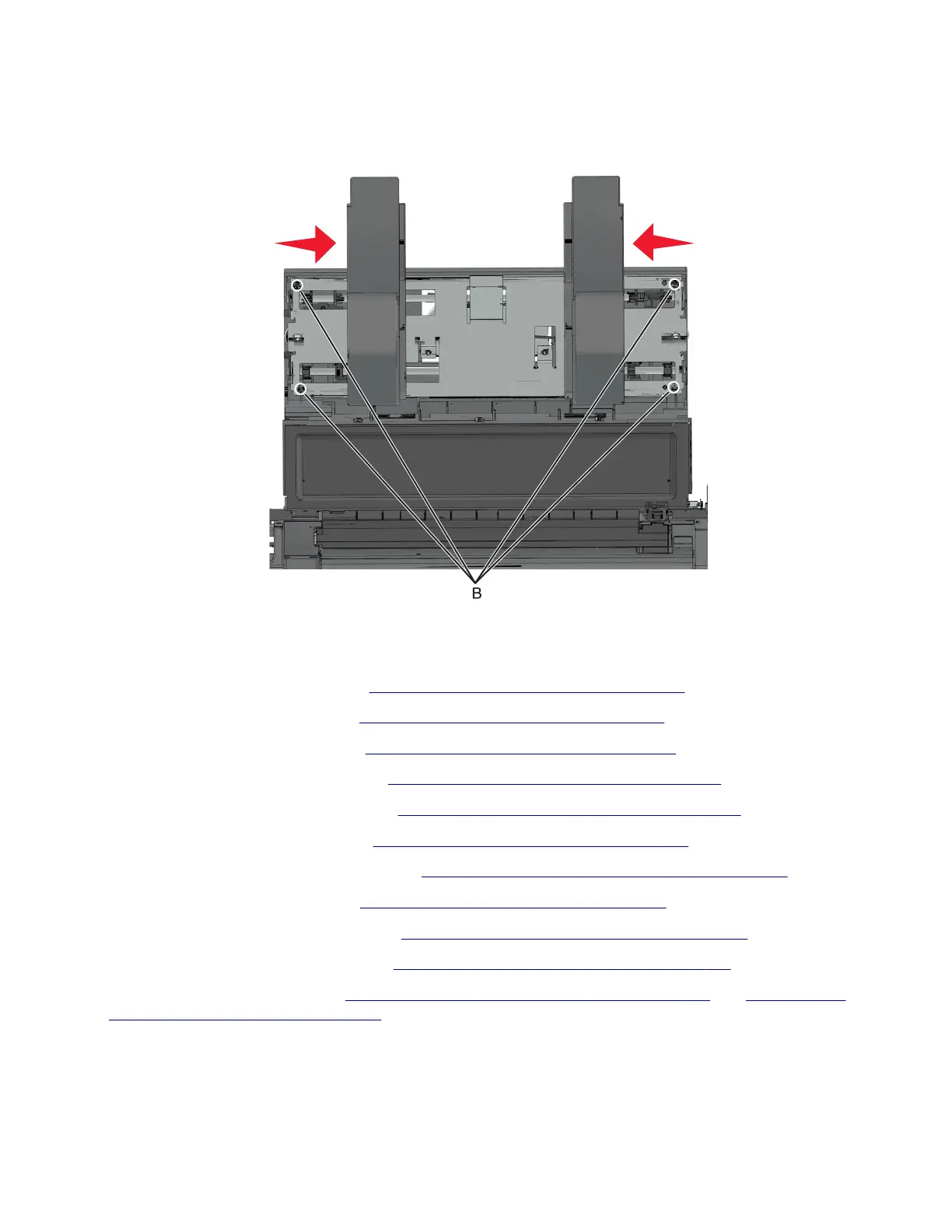 4 Remove the stapler service cover. See “Stapler service cover removal” on page 397.