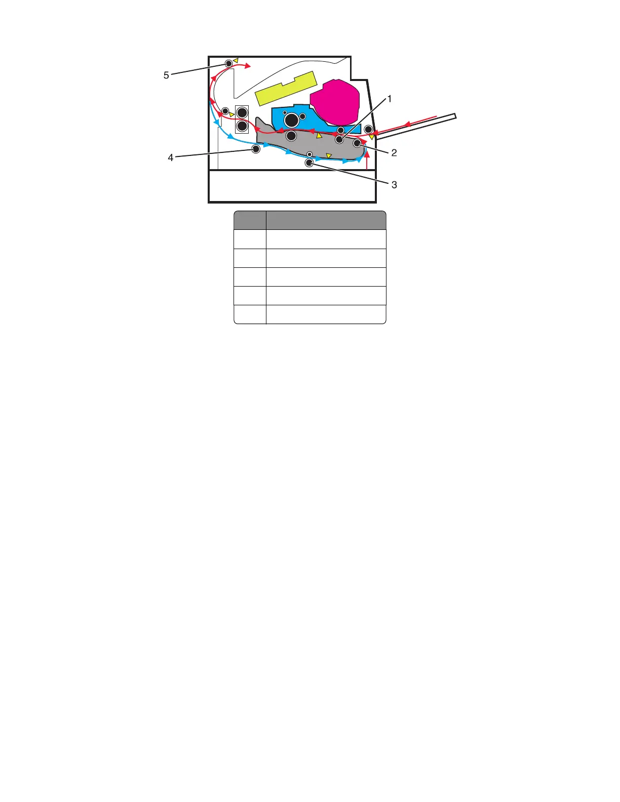 transfers power to following paths: photoconductor drum, transfer roll, fuser, paper exit, input, duplex, and MPF.