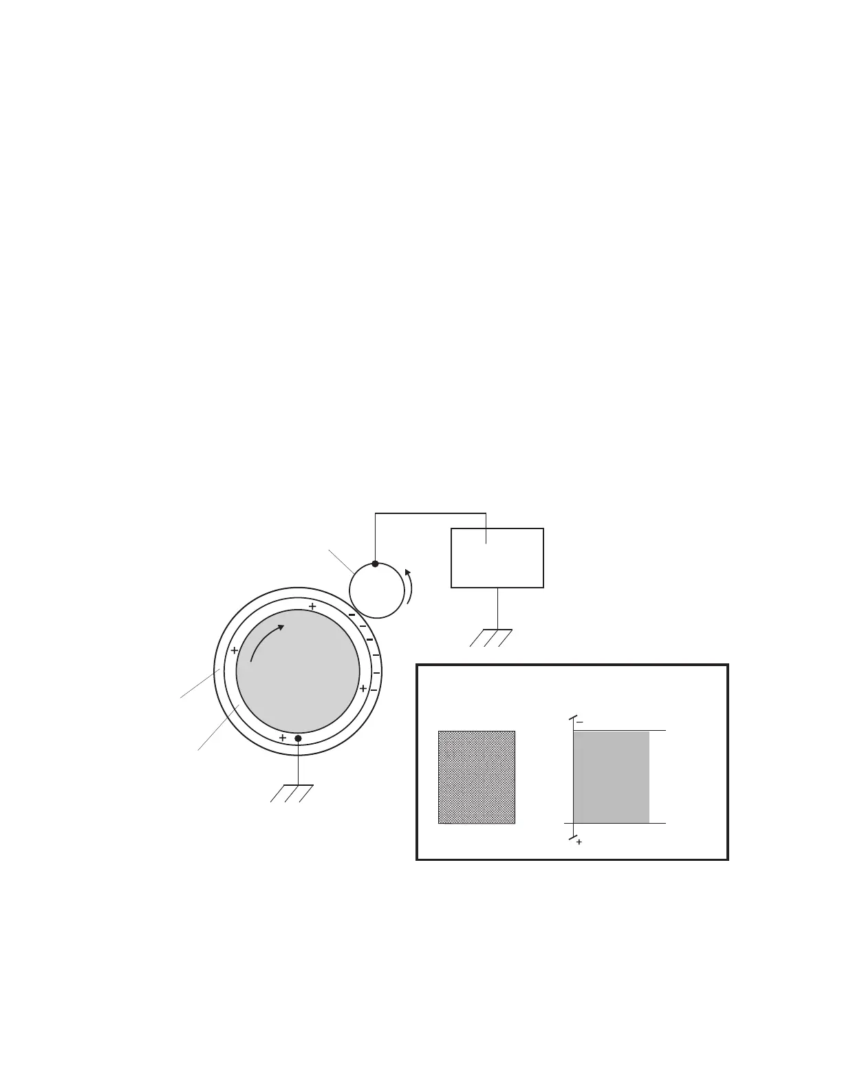 During the charge step, voltage is sent from the HVPS to the charge roll beside the photoconductor. The charge