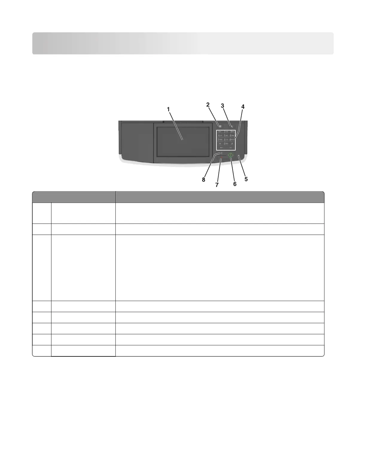 8 Clear All / Reset button Reset the default settings of a function, such as printing, copying, or e-mailing.