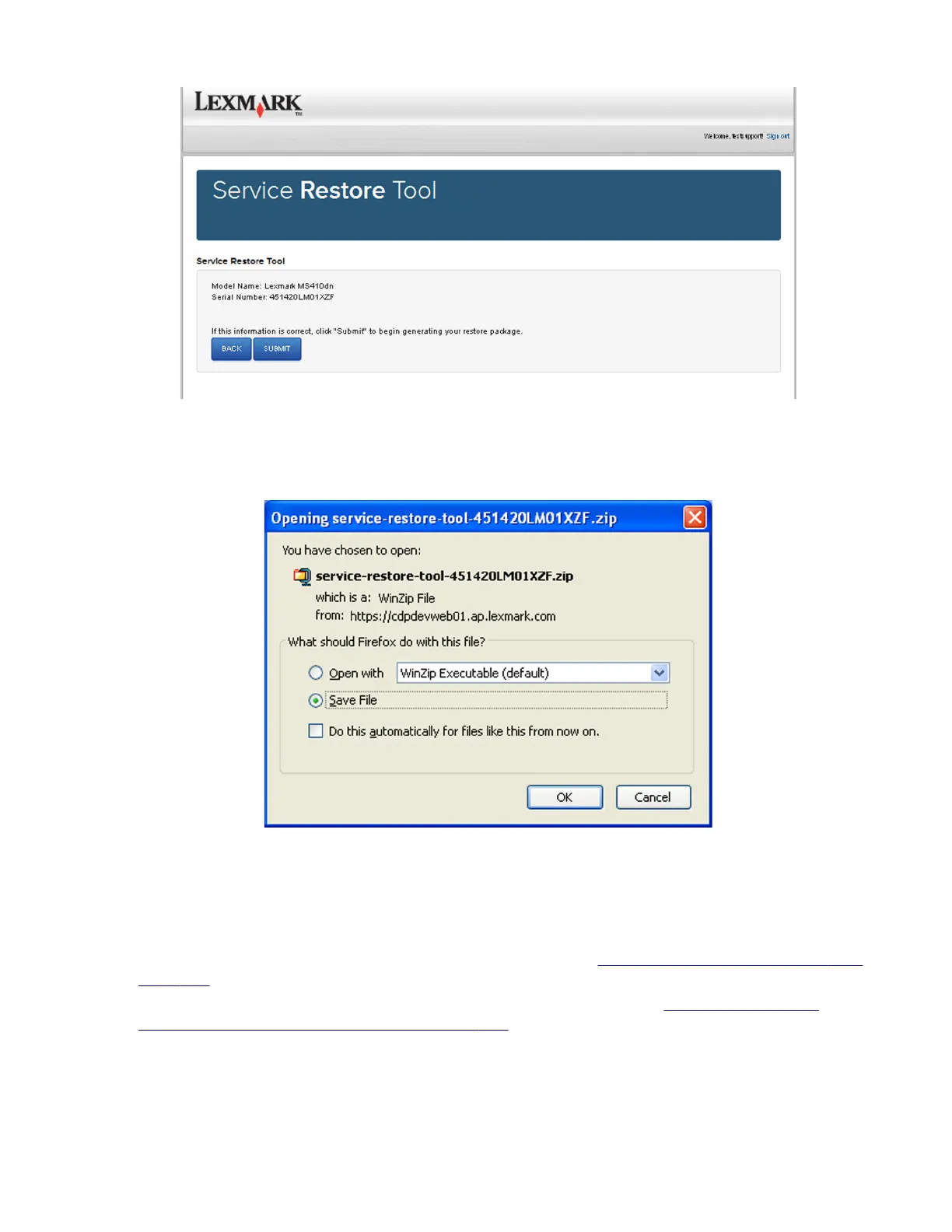 Note: Make sure that the serial number in the zip file matches the serial number of the printer being
