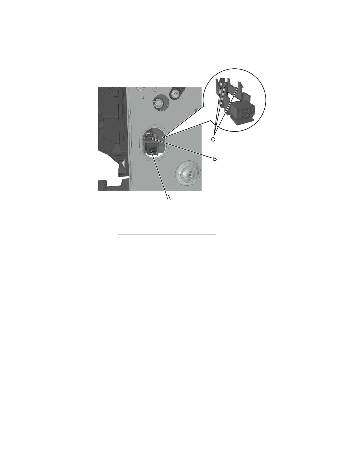 4 Release the three latches (C), and then pry to remove the tray present sensor.