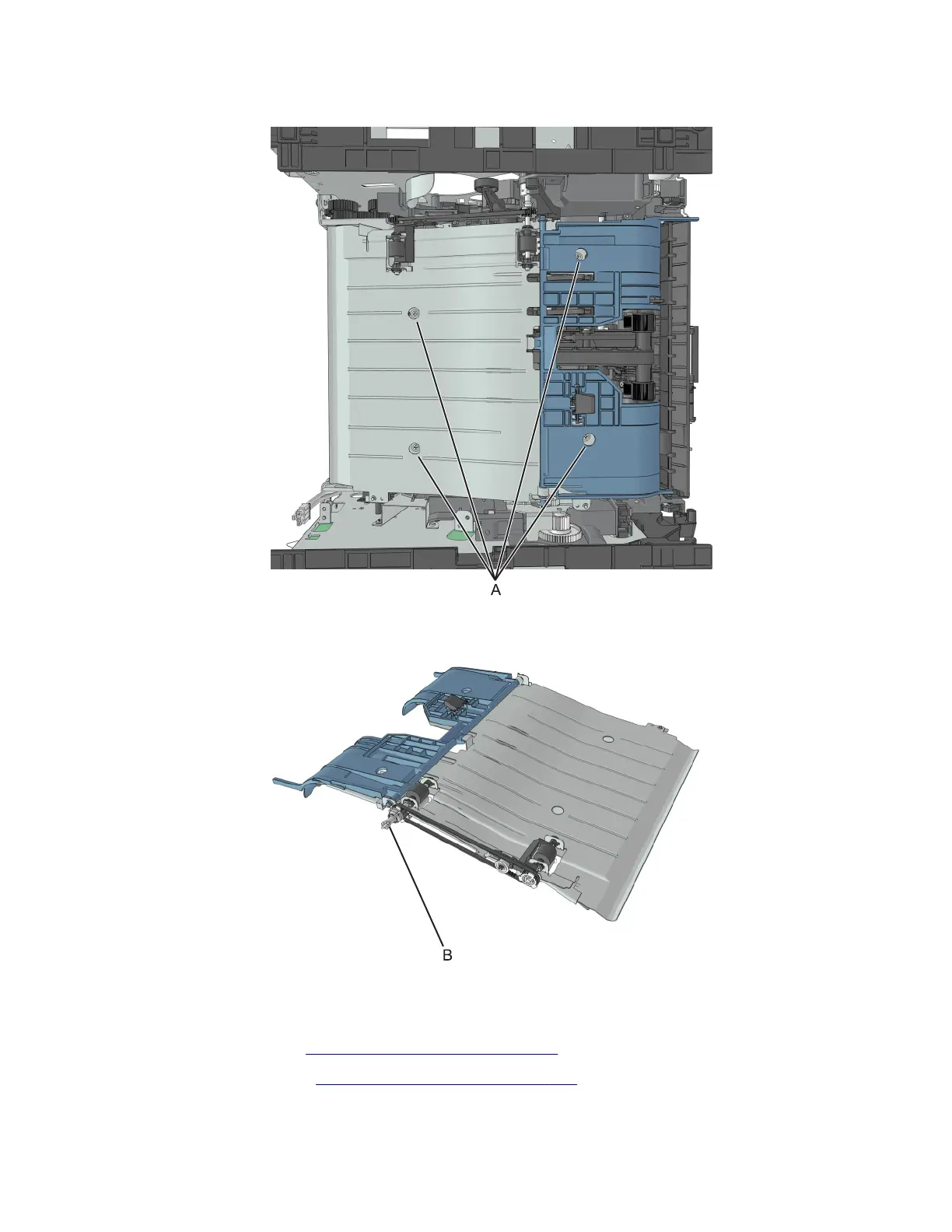 Note: The duplex link (B) is part of the FRU.