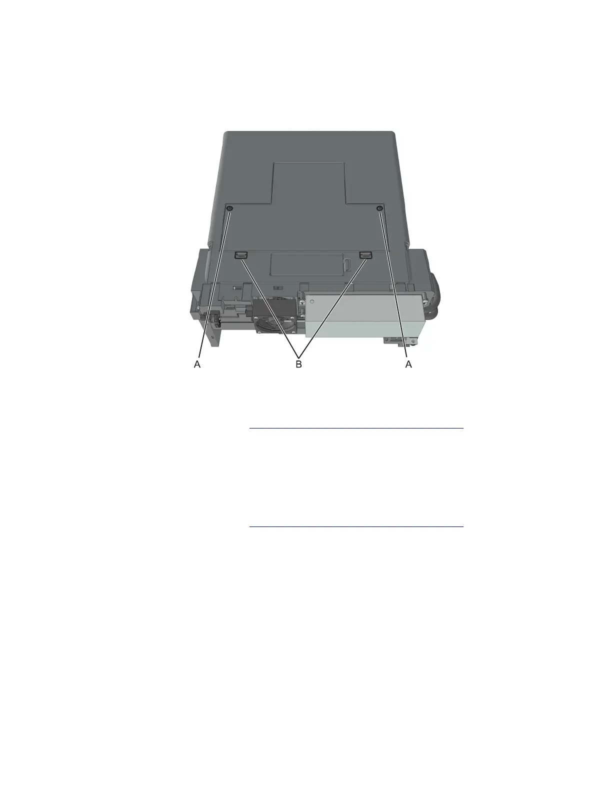 2 Press the latches (B) to release, and pull the service cover o the stapler.