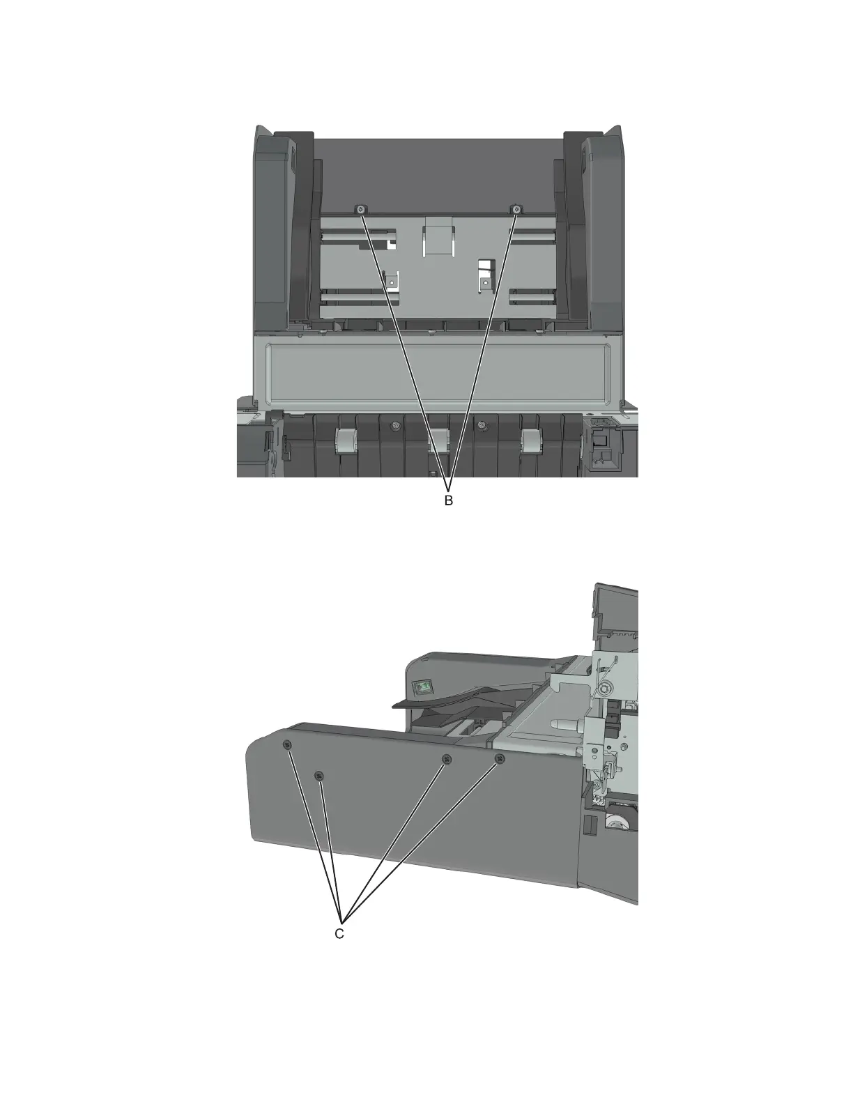 8 Remove the four screws (C) from the left side of the cover.