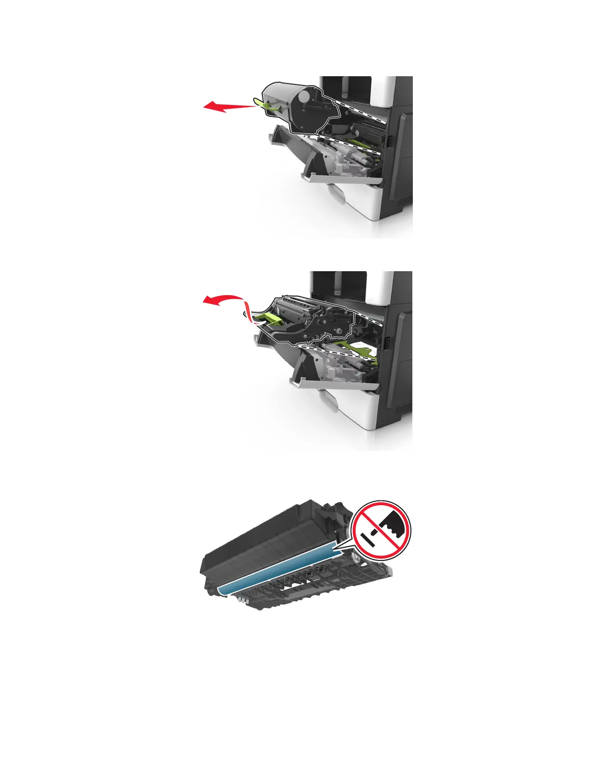 3 Lift the green handle, and then pull out the imaging unit from the printer.