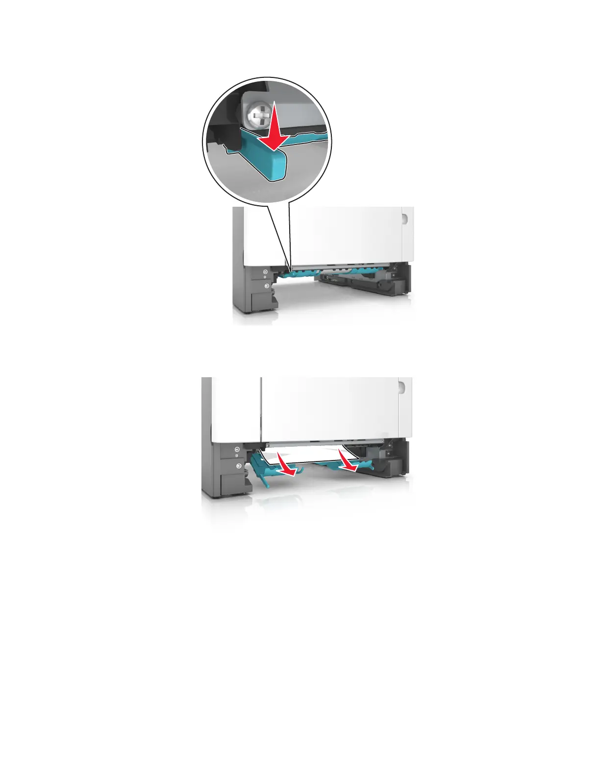 Note: The message on the printer display indicates the tray where the jammed paper is located.