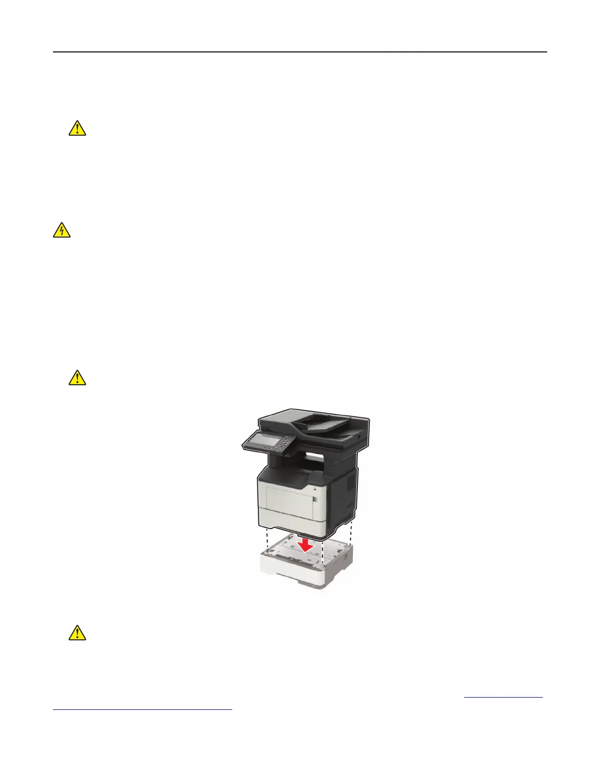 4 Align the printer with the optional tray, and then lower the printer into place.