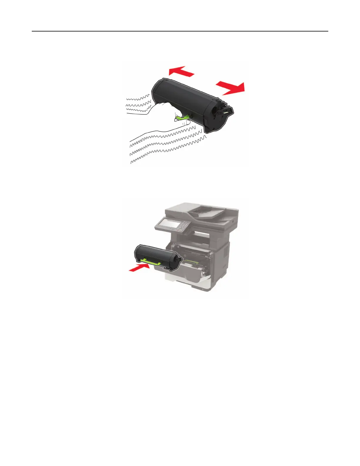 3 Unpack the new toner cartridge, and then shake it three times to redistribute the toner.