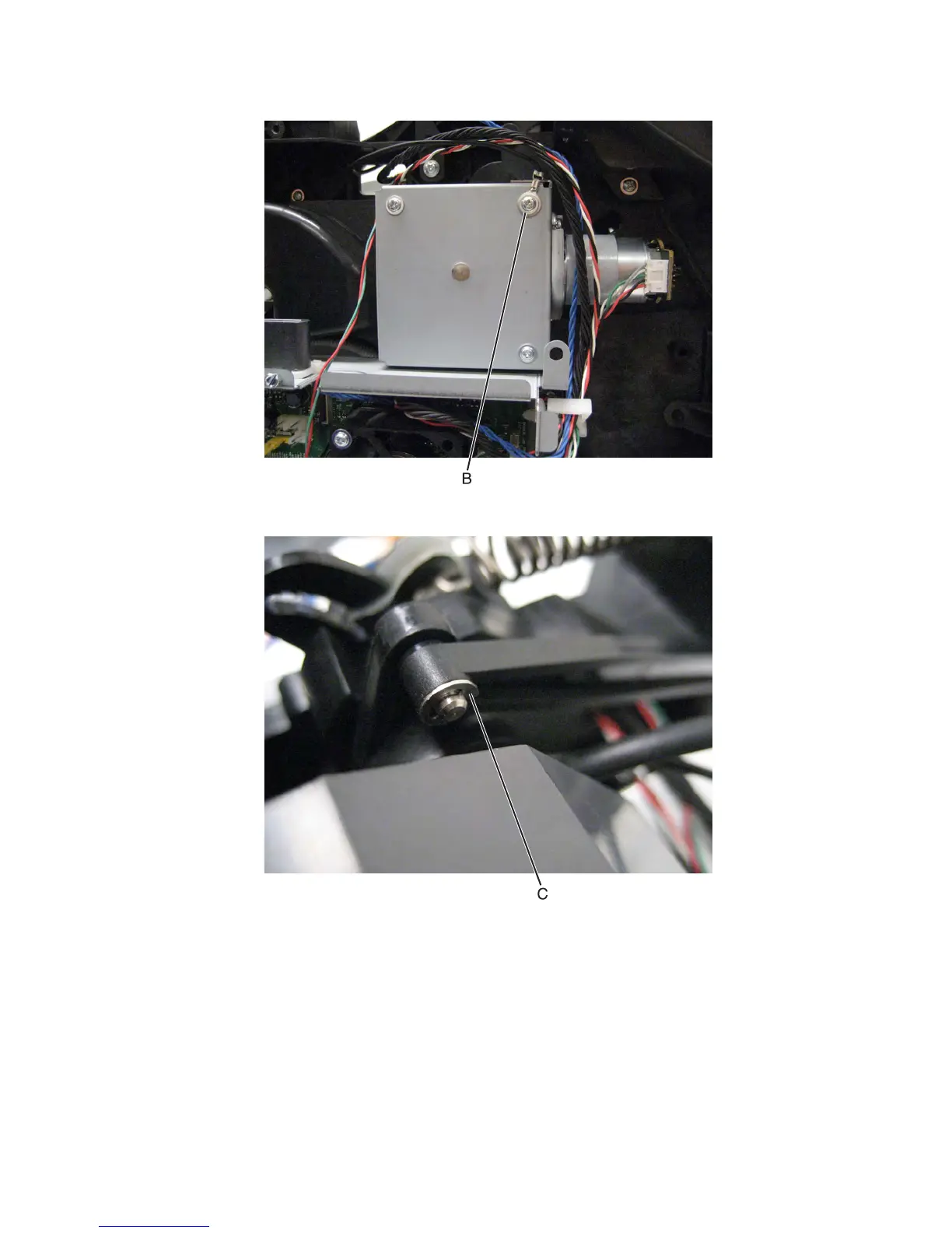 13 Remove the screw (B) securing the grounding cable to the machine.