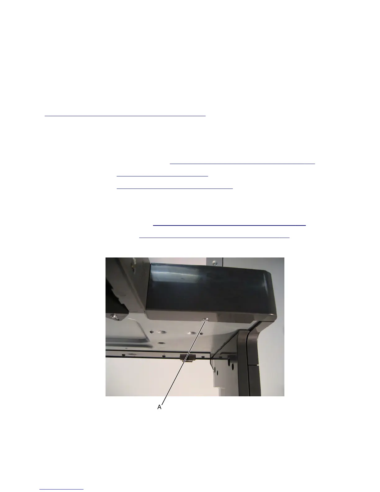 8 Remove the screw (A) securing the front scanner cover to the machine.