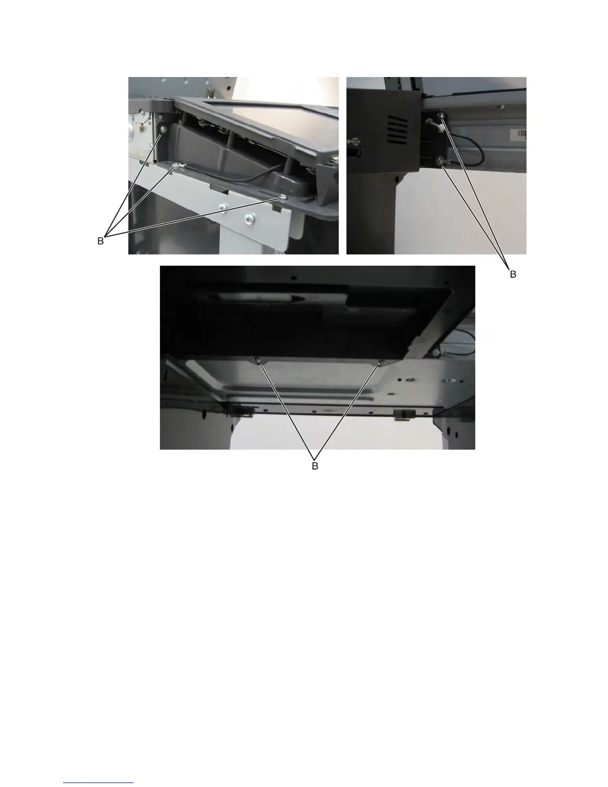 10 Remove the seven screws (B) securing the control panel to the machine.