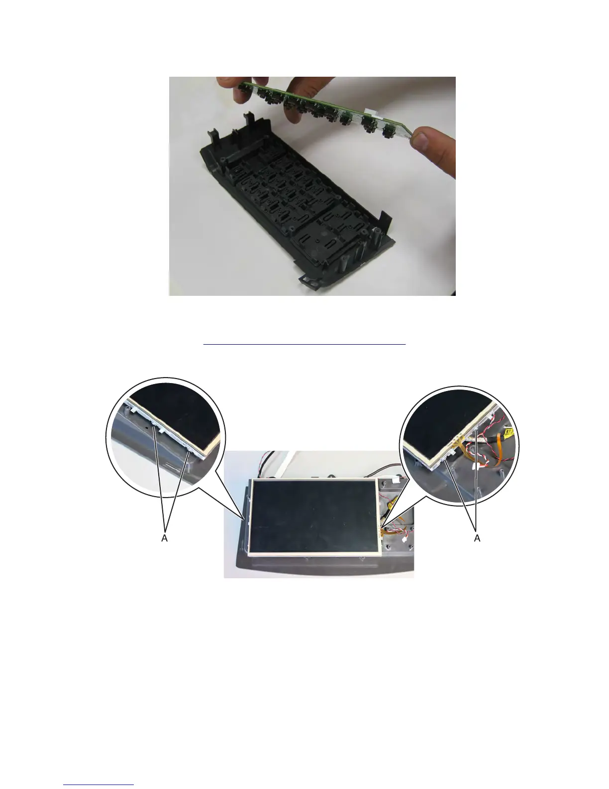 Warning—Potential Damage: Connections (B) under the display are prone to damage. Extra care is required in