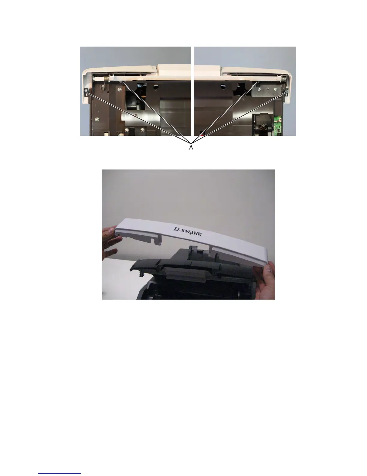 2 Remove the four screws (A) securing the control panel front cover to the machine.
