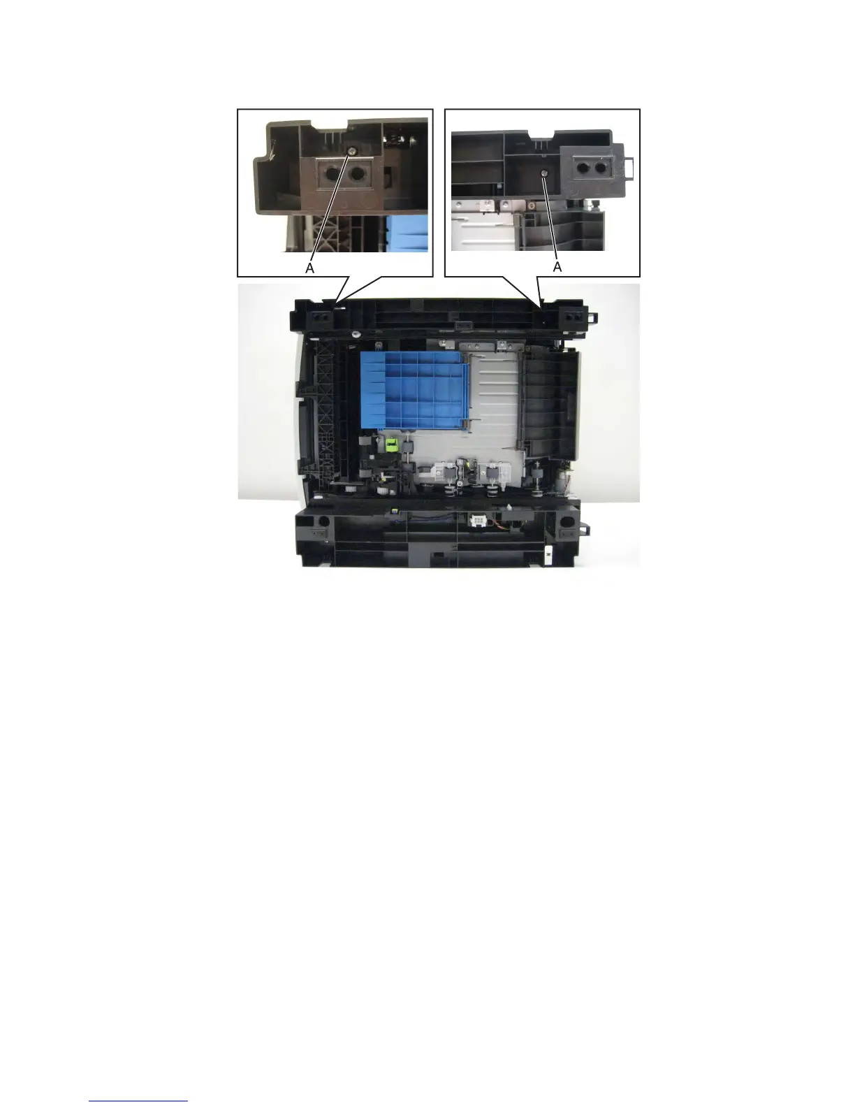 4 Remove the two screws (A) securing the right frame extension to the machine.