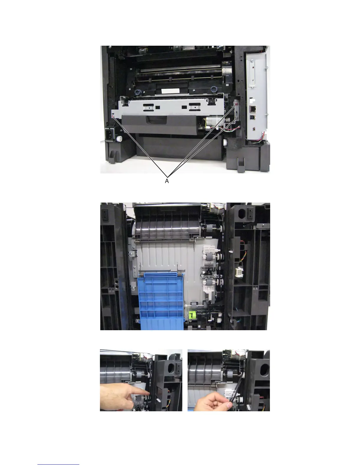 5 Remove the three screws (A) securing the duplex motor to the machine.