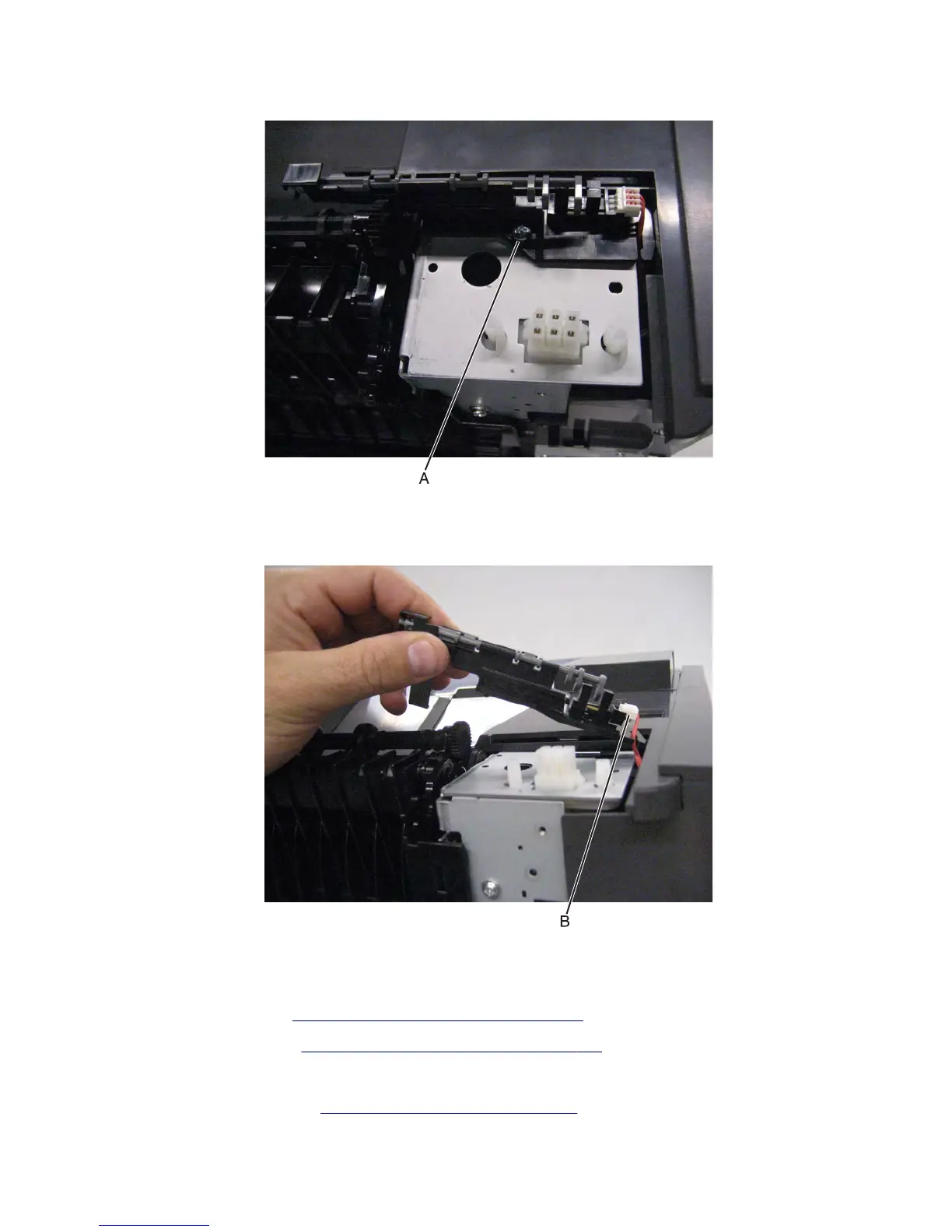 4 Remove the screw (A) securing the sensor (standard bin full) to the machine.