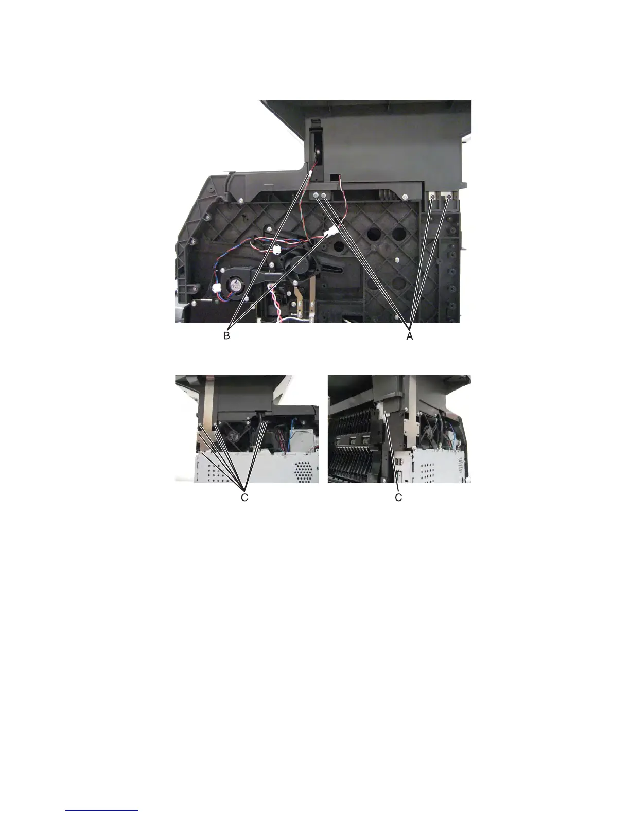 6 On the left side of the machine, remove the eight (C) screws securing the ADF/scanner assembly to the machine.