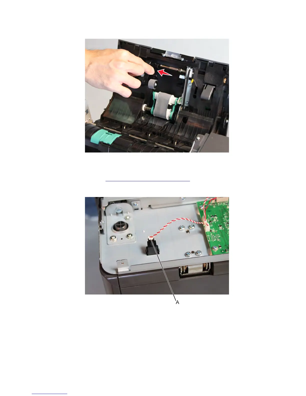 1 Remove the ADF rear cover. See “ADF rear cover removal” on page 598.