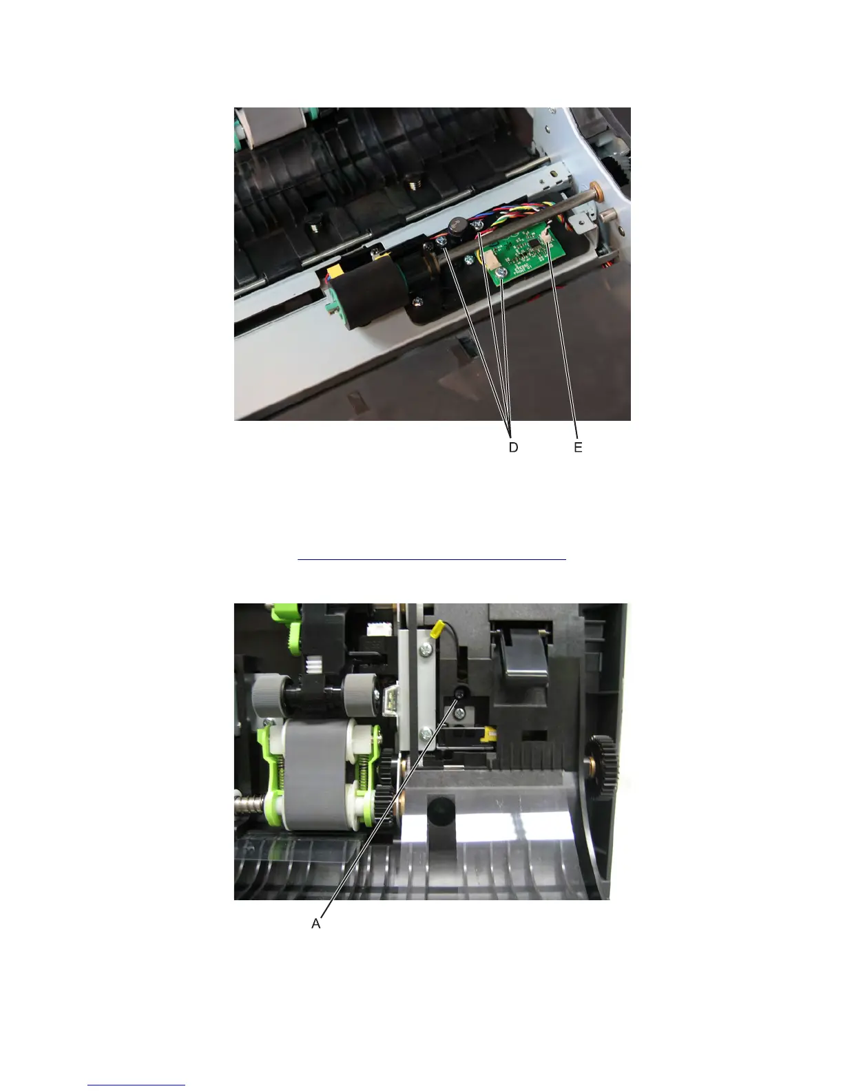 13 Disconnect the cable (E) from the multifeed sensor parts kit.