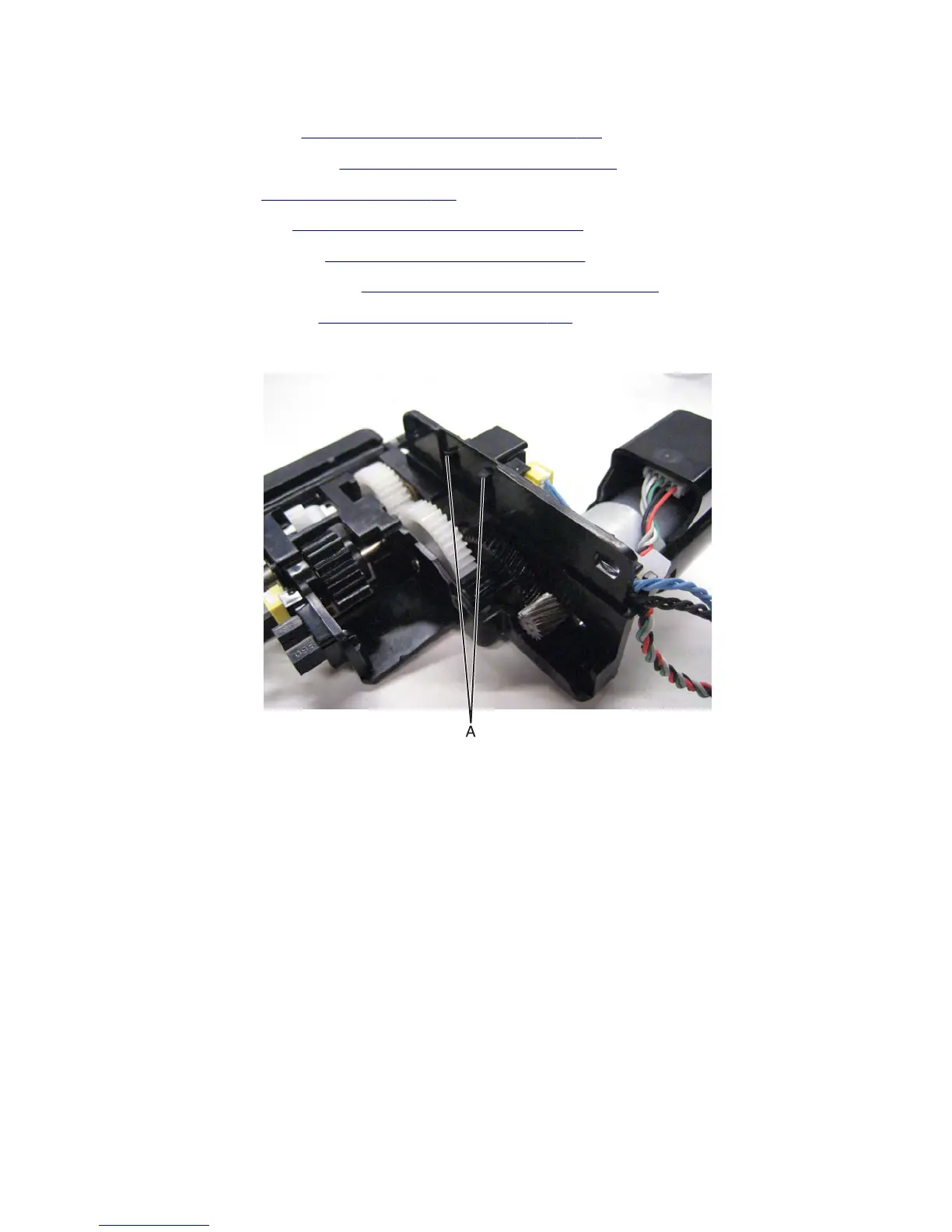 8 Release the hooks (A) securing the sensor (pick roller position) to the assembly.