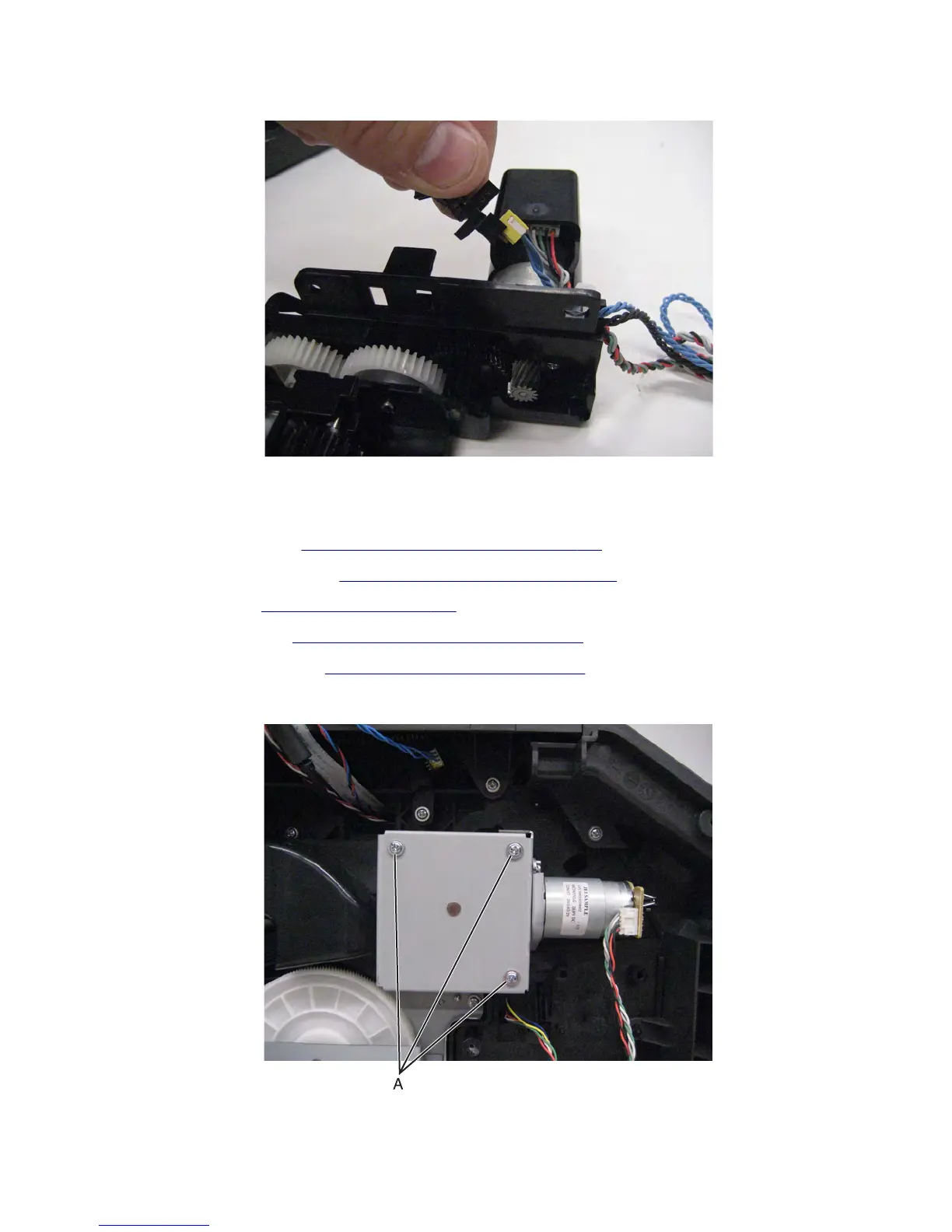 6 Remove the three screws (A) securing the toner add motor to the machine.