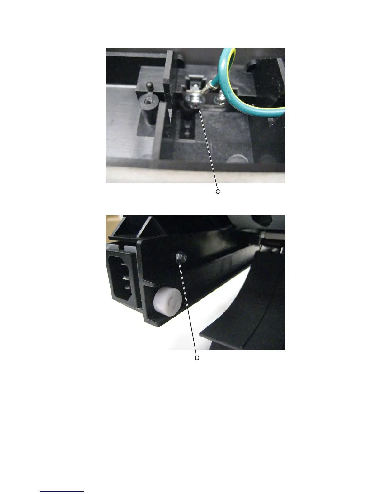 6 Remove the screw (C) securing the grounding cable.