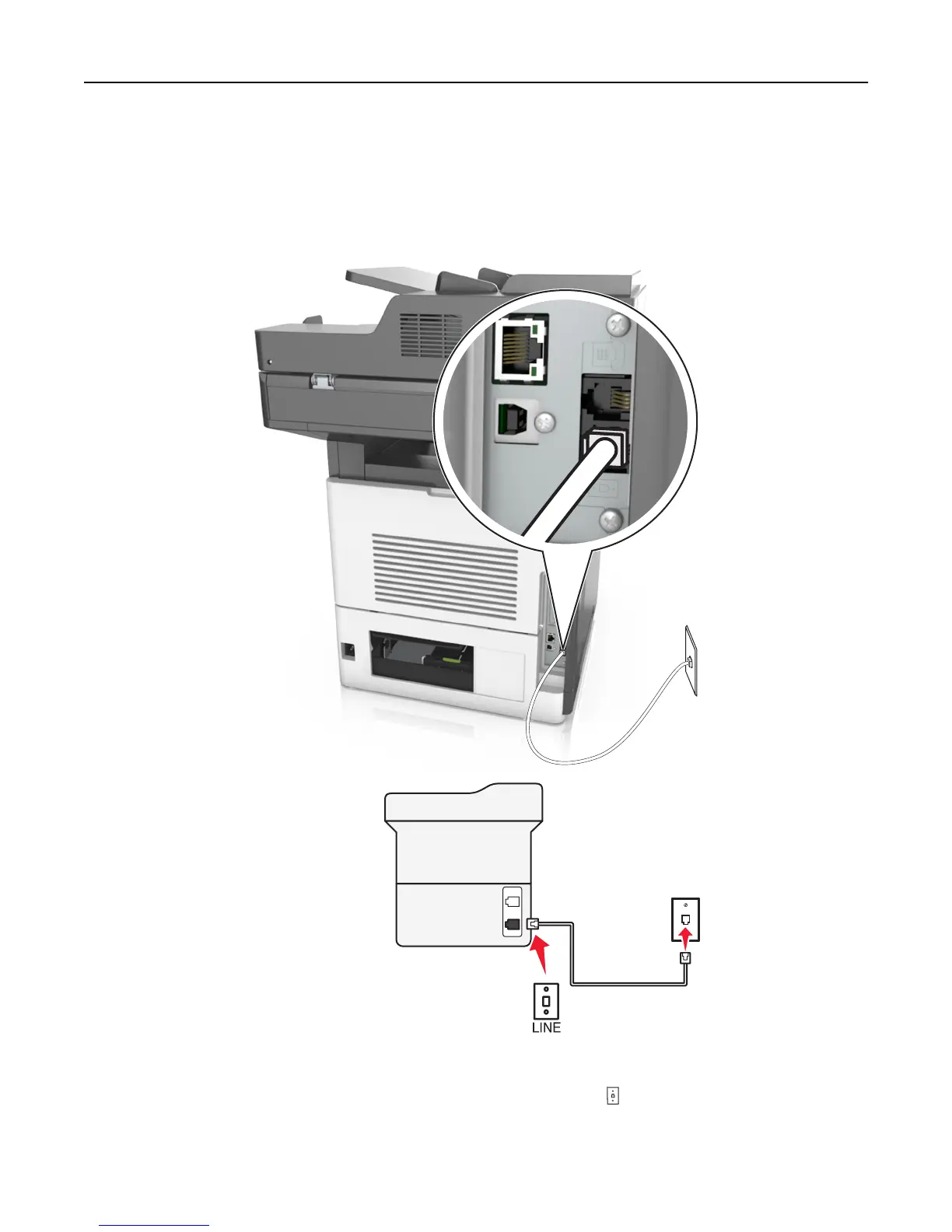 1 Connect one end of the telephone cable that came with the printer to the port of the printer.