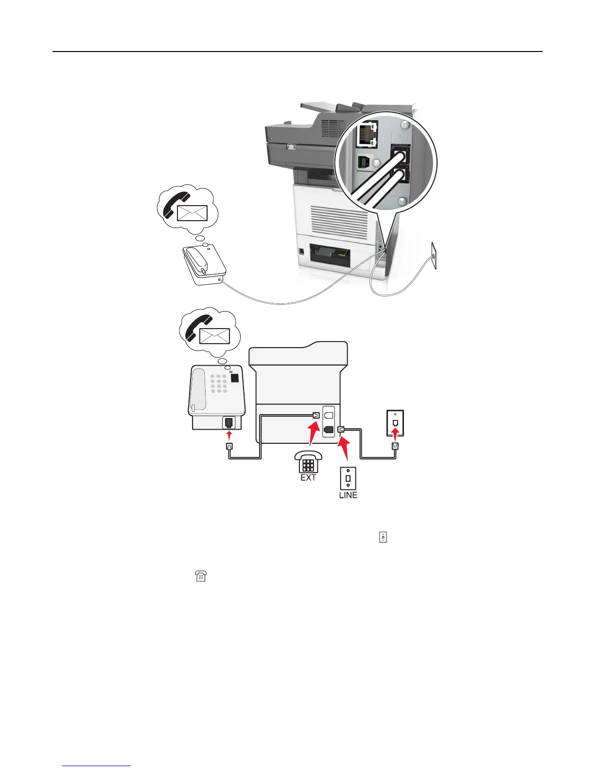 Setup 3: Printer is sharing the line with a telephone subscribed to voice mail service