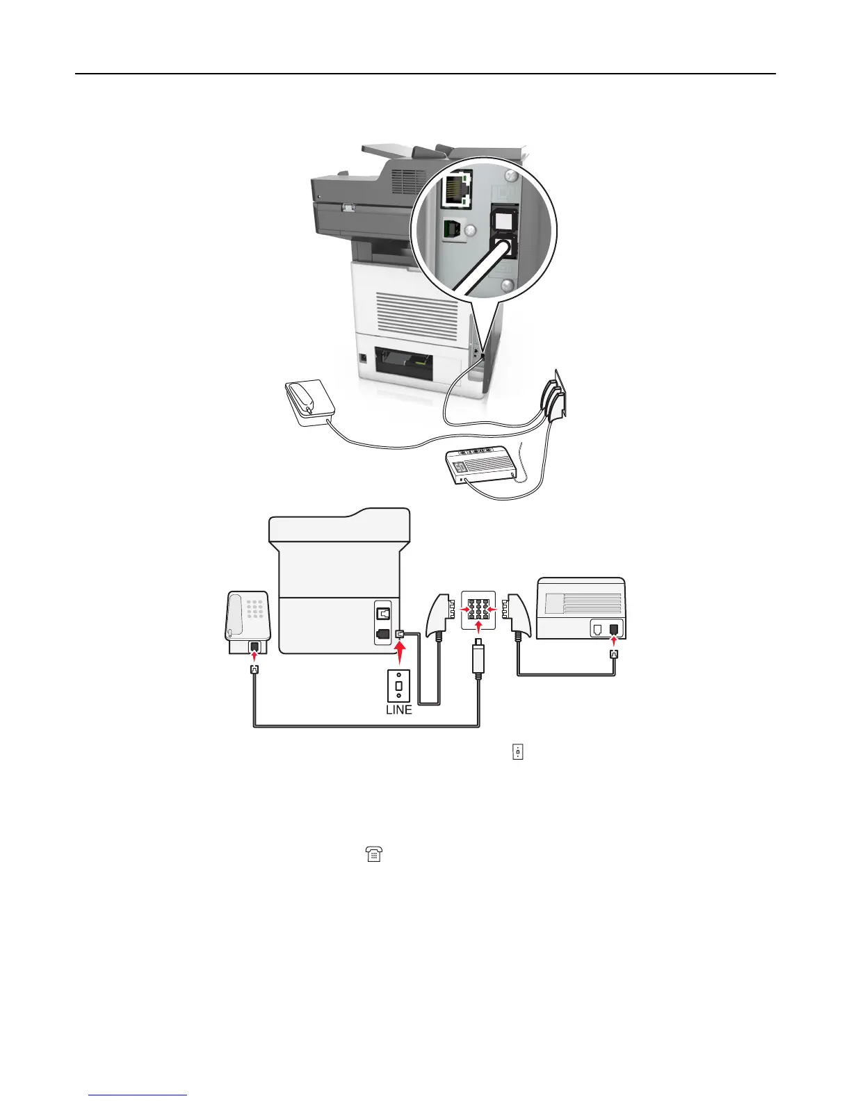 3 If you want to connect a telephone and answering machine to the same wall jack, then connect the devices as